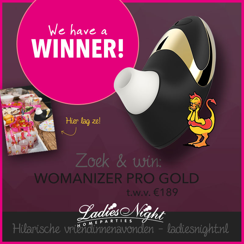 Jacqueline uit Almere, van harte gefeliciteerd, de Womanizer Pro GOLD (t.w.v. €189) is van jou!
