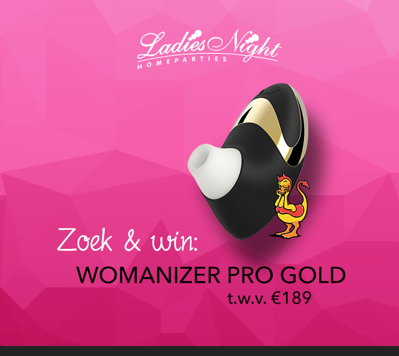 Wil jij kans maken op deze fantastische toy? We hebben op de website ergens een Womanizer Pro Gold verstopt! Heb je deze Womanizer gevonden? Klik op de afbeelding, laat op het formulier dat verschijnt je gegevens achter (zodat we je kunnen bereiken als je wint) en maak kans! That’s it! De winnaar wordt eind april bekend gemaakt op de Ladies Night Facebook pagina.